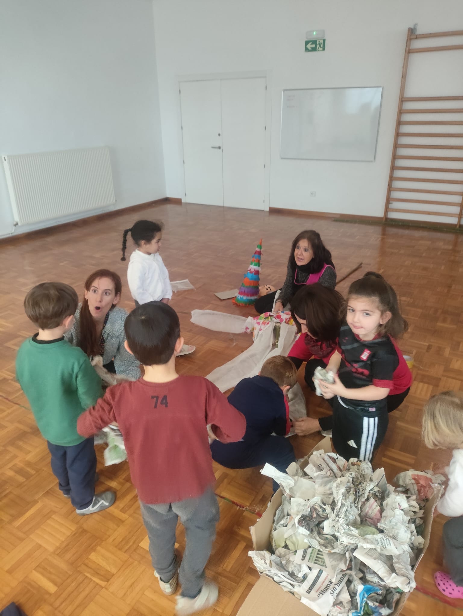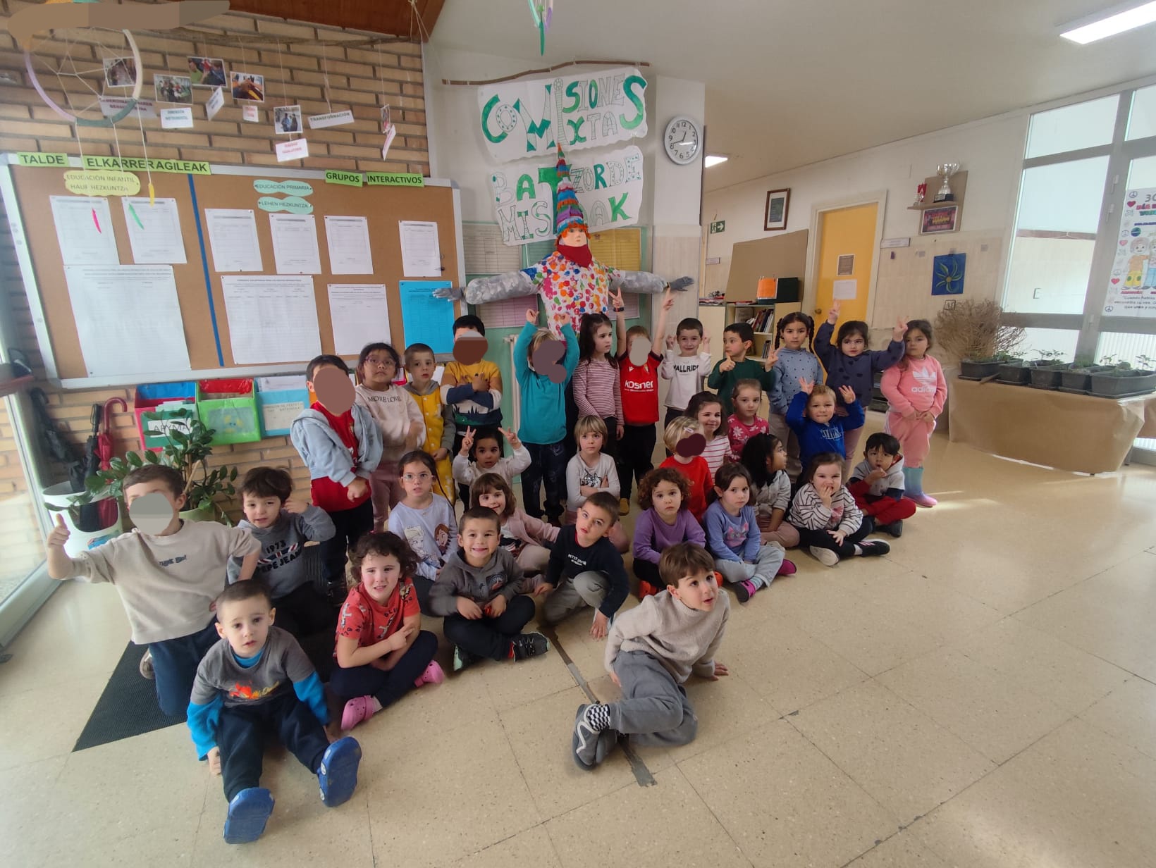 Como broche final, todo el ciclo ha colaborado en una actividad conjunta muy especial: rellenar con papel el muñeco gigante de Miel Otxin. Ha sido una experiencia compartida en la que niños y niñas han demostrado una actitud muy positiva, gran implicación y muchas ganas de participar.